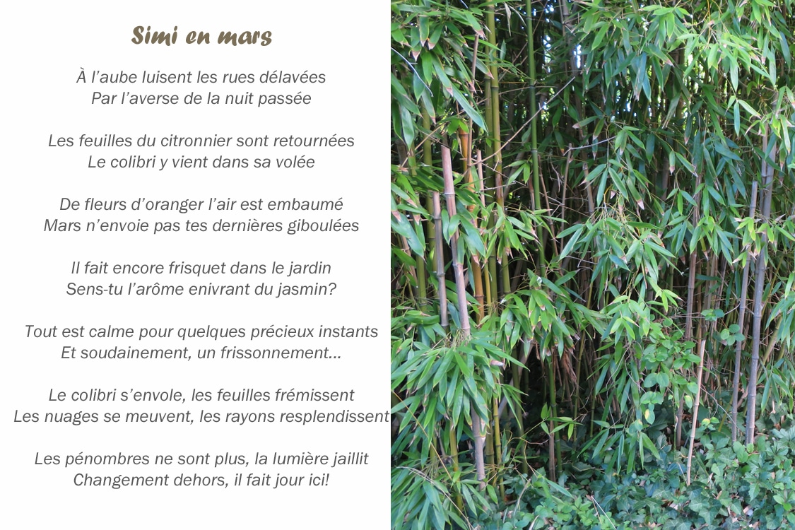 Ce poème écrit en mars 2017, démontre que la température était plus clémente car la nature était bien plus en avance que cette année.